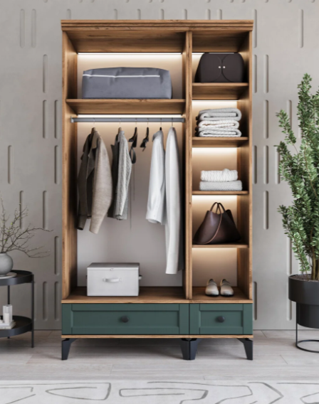 Uzun ömürlü, sağlam ve modern tasarımıyla yatak odanıza estetik bir görünüm kazandırır. Geniş iç hacmi sayesinde kıyafetlerinizi düzenli bir şekilde saklayabilirsiniz. Kaliteli menteşe ve ray sistemleri ile sessiz ve sorunsuz kullanım sağlar.